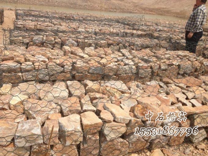 格賓網(wǎng)箱填充料塊石粒徑應(yīng)控制在8~25cm的占80%以上,其余20%為級(jí)配好的碎石。